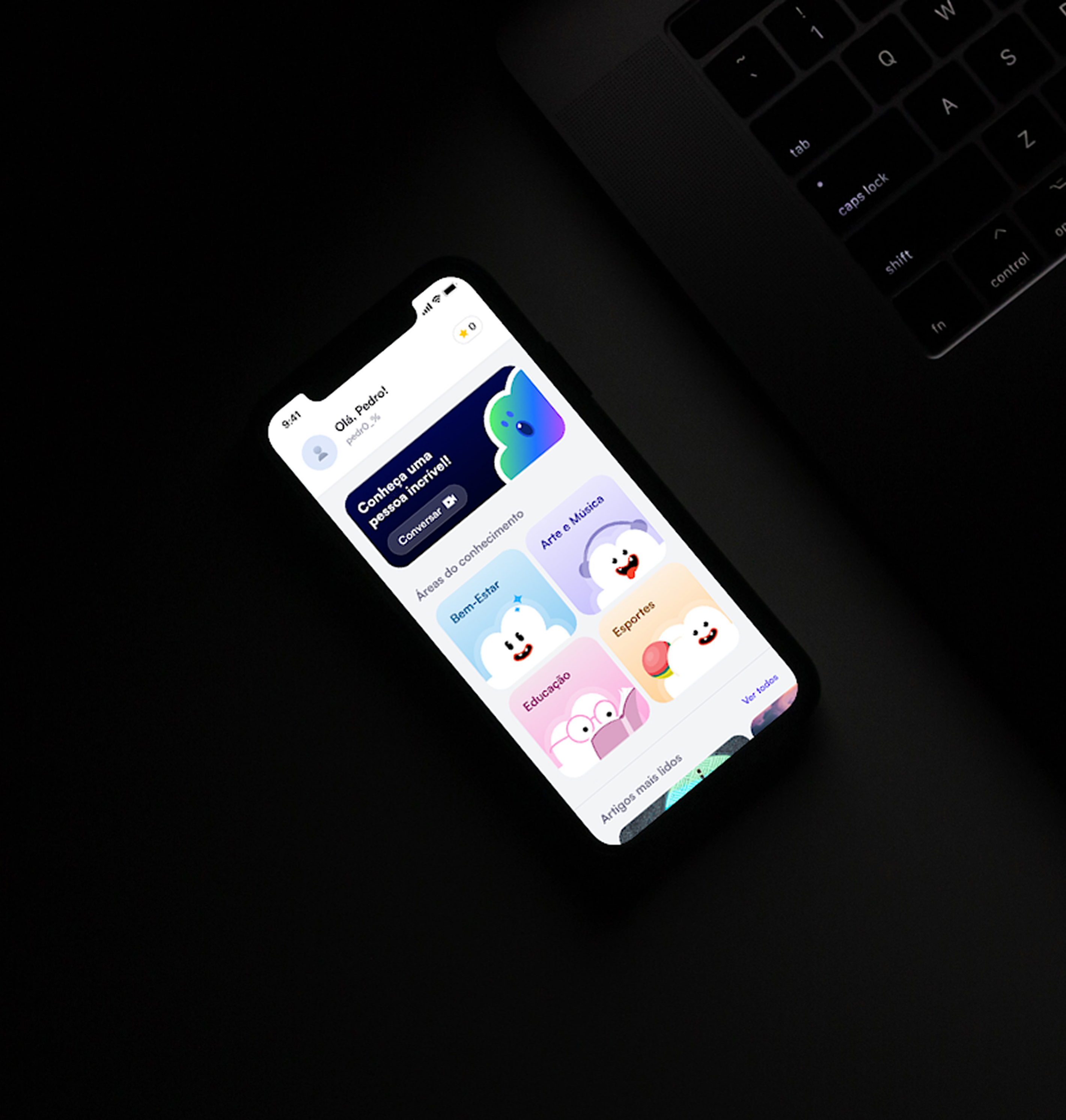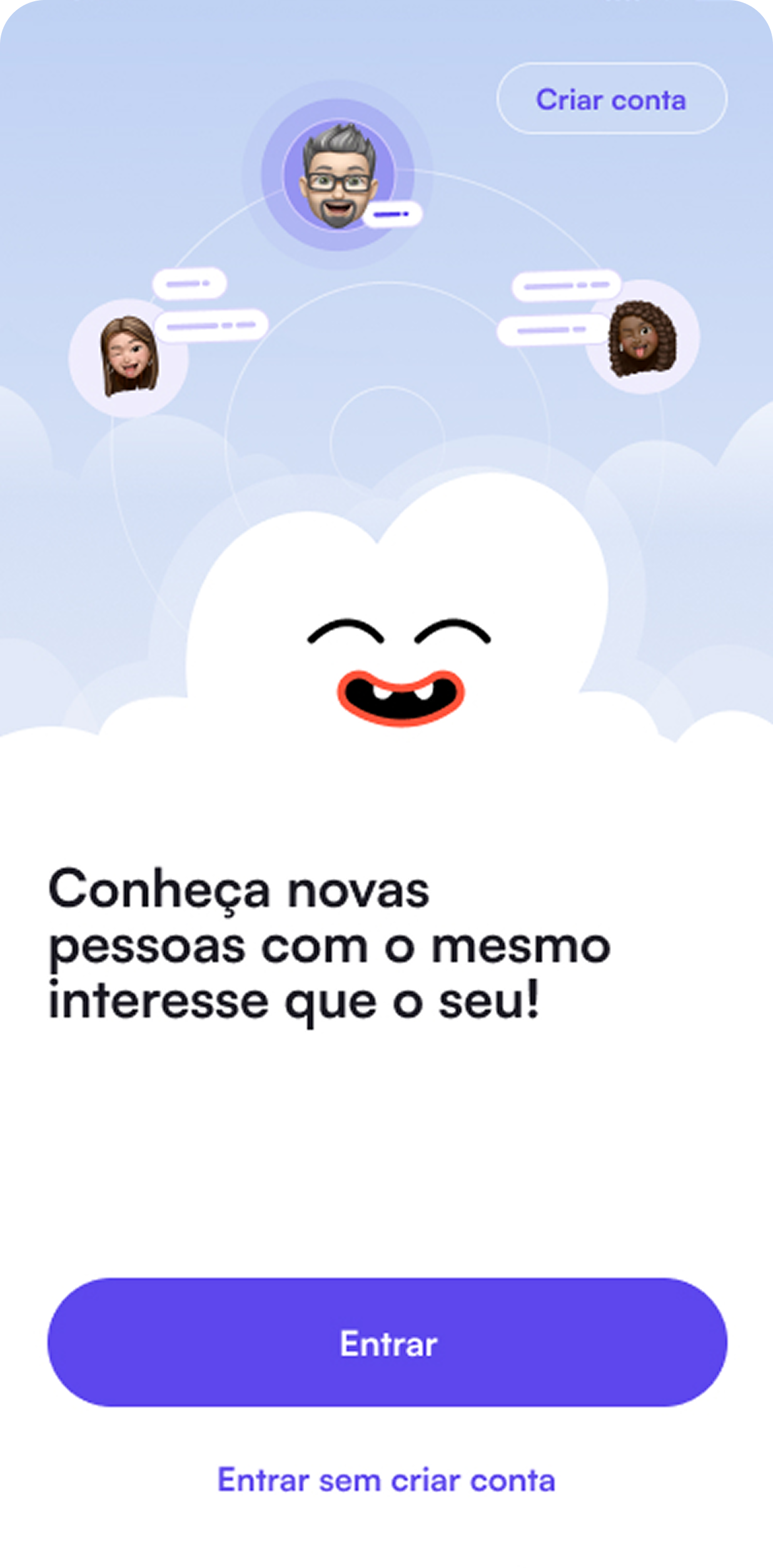 A identidade visual foi construída para reforçar senso de pertencimento e interação constante entre os usuários. Cores vibrantes, ilustrações autorais e microinterações ajudam a transformar a navegação em uma experiência social mais envolvente. O design fortalece o posicionamento da marca e sustenta a proposta de conexão genuína dentro da plataforma