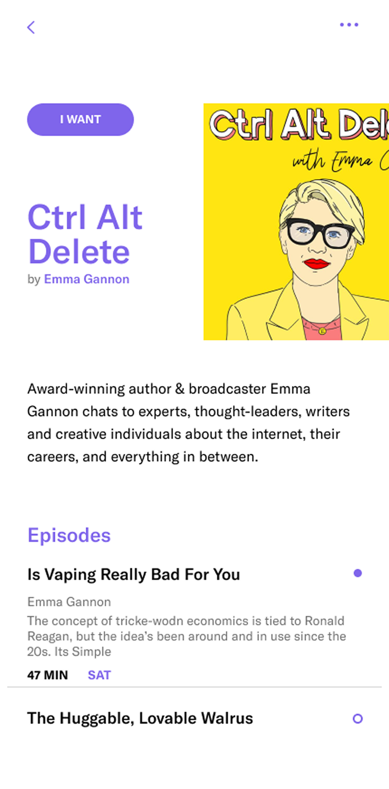 A experiência organiza episódios, categorias e destaques de forma modular, permitindo que o usuário encontre rapidamente o que quer ouvir. A navegação foi pensada para reduzir esforço e tornar o consumo de conteúdo mais direto. O design equilibra informação e respiro, evitando sobrecarga visual mesmo com grande volume de podcasts
